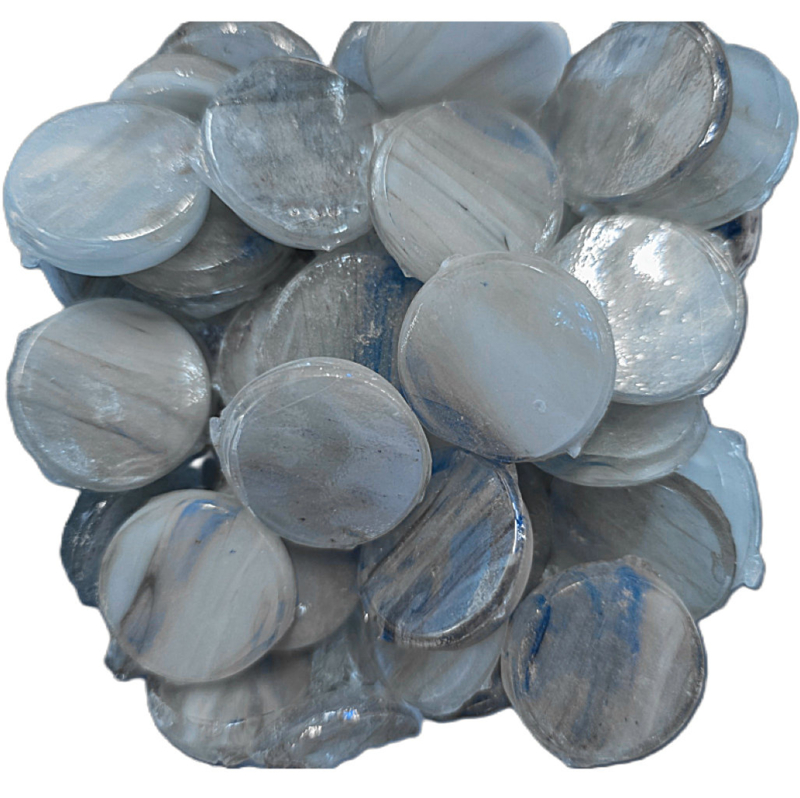 Starlight Glas Mozaïek Tegels 15 mm – 25 stuks Metallic Reflectie Kastra 87Transparante Starlight glasmozaïek tegels met metallic folie. Spiegelend effect, vorst- en UV-bestendig. Set van 25 tegels van 15 mm.