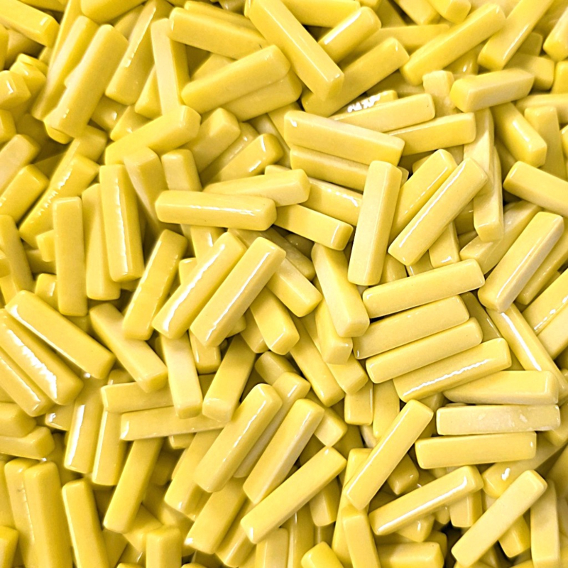 Deze glas staafjes van 20x5x6 mm zijn gemaakt van gerecycled glas. Ze knippen gemakkelijk met behulp van een wieltjestang om kleinere stukjes te maken voor het creëren van grenzen, lijnen, letters en accenten.